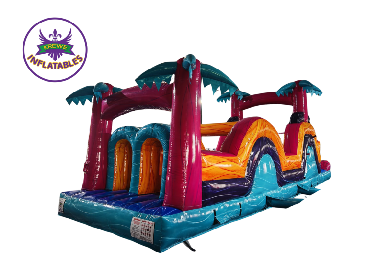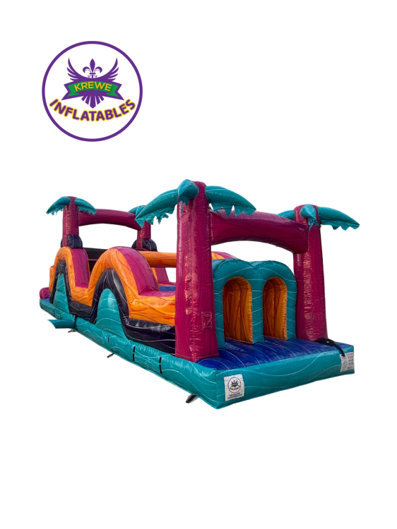 The 40 FT Pink Palm Racer brings tropical vibes and big-time excitement with its bold pink & teal colors and palm tree design. Perfect for parties, school events, and anyone ready to race through a fun-filled obstacle challenge!